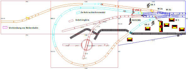 Kehrschleife mit Vorbereitung für einen Schattenbahnhof